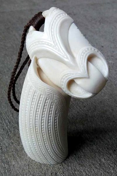 Gareth was born in Lower Hutt in 1971 and his practice centers on small carved sculpture and adornment in bone, ivory and deer antler, as well as indigenous stone such as pakohe, onewa and pounamu (greenstone).