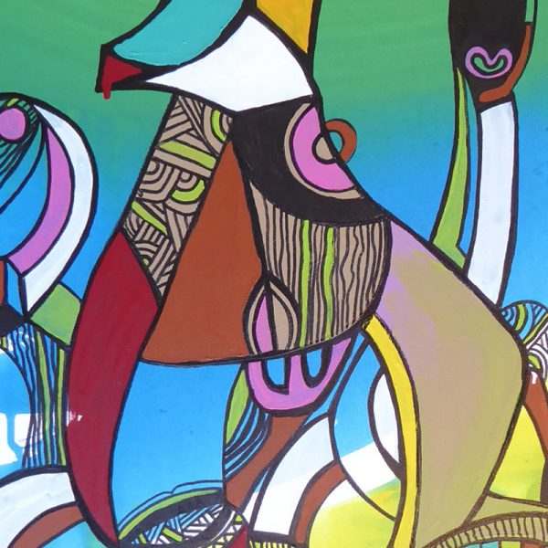 Hemi is a self-taught artist and describes his working style as an organic process in that it is not planned. It’s more like channeling energy from the materials that he uses. One unusual material that he likes to use in his paintings is dirt/earth. He prefers his artwork to have a connection with its material history by using recycled timbers and dirt as a way of connecting past histories with future stories.