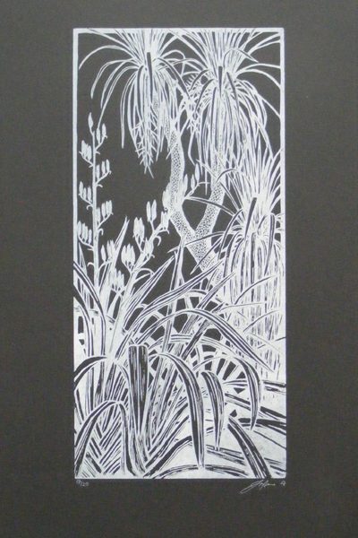 In 2001, Jono won Environment Canterbury’s “future environmentalist” of the year award and conservation still remains as one of his main passions. While still attending school, Jono was involved in research of the long tailed bat which are on the brink of extinction in the Hanging Rock area. This often involved counting and capturing the bats as they venture from the cavities of old cabbage trees. From these experiences, cabbage trees are well engrained in Jono’s mind and are the most popular subject in his art work.