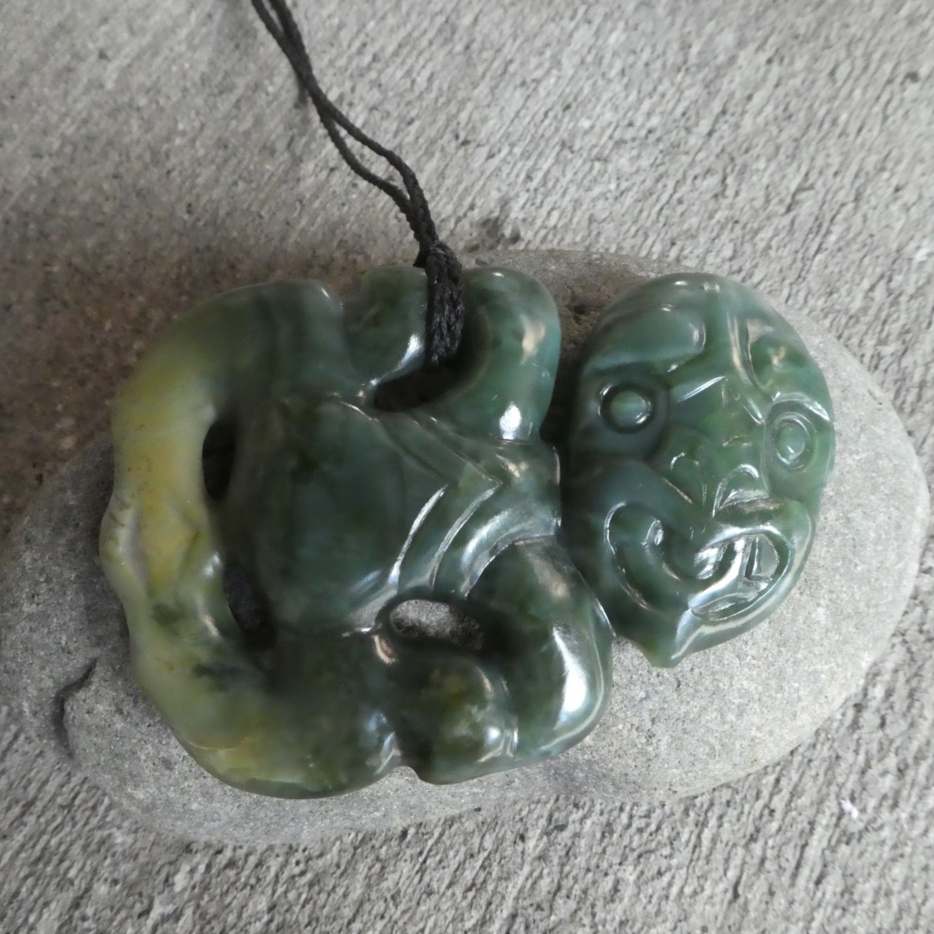The tiki is a carved abstract human form usually made of greenstone/pounamu. The tiki is said to represent the first man or the first woman, and can be worn for good luck, protection from evil, and fertility.