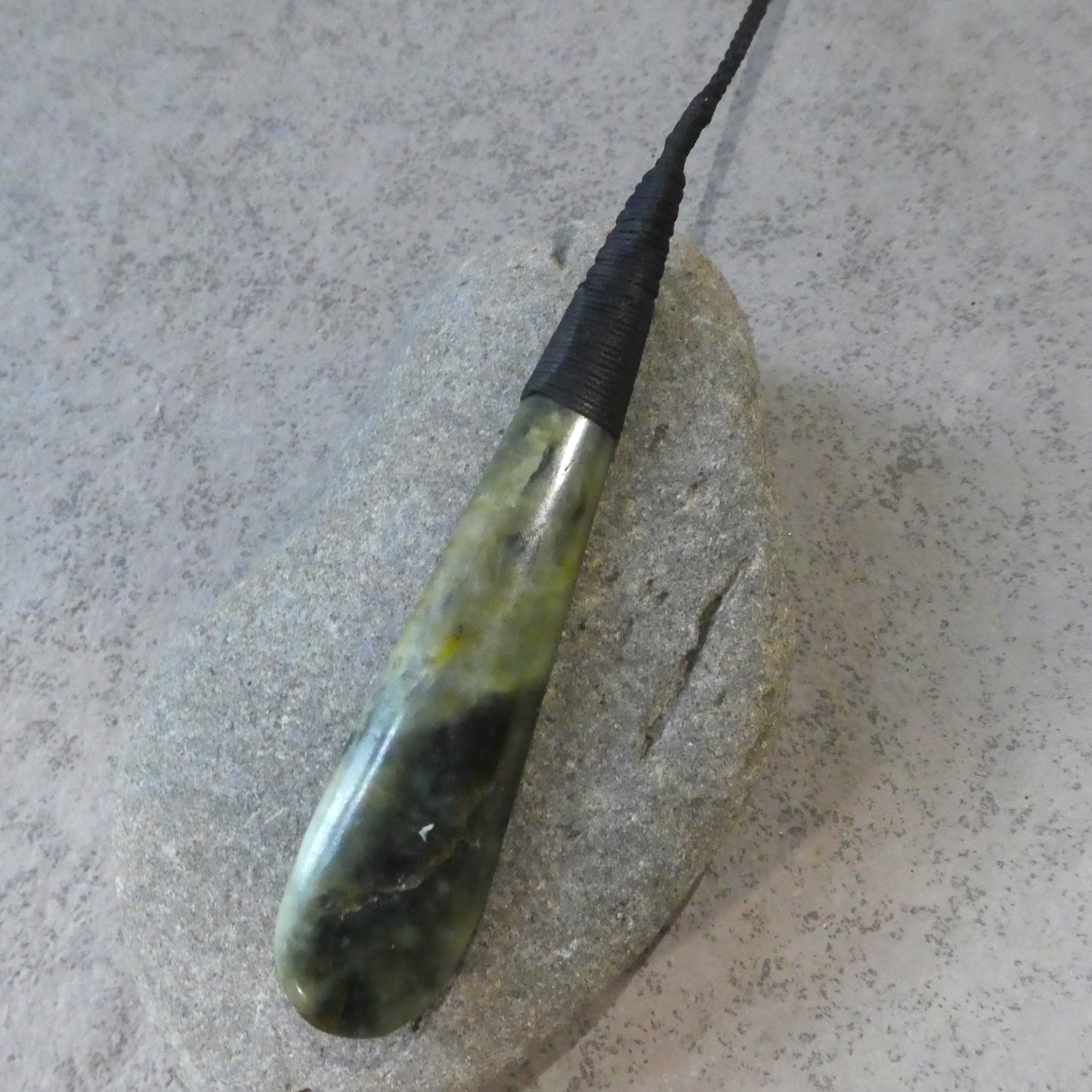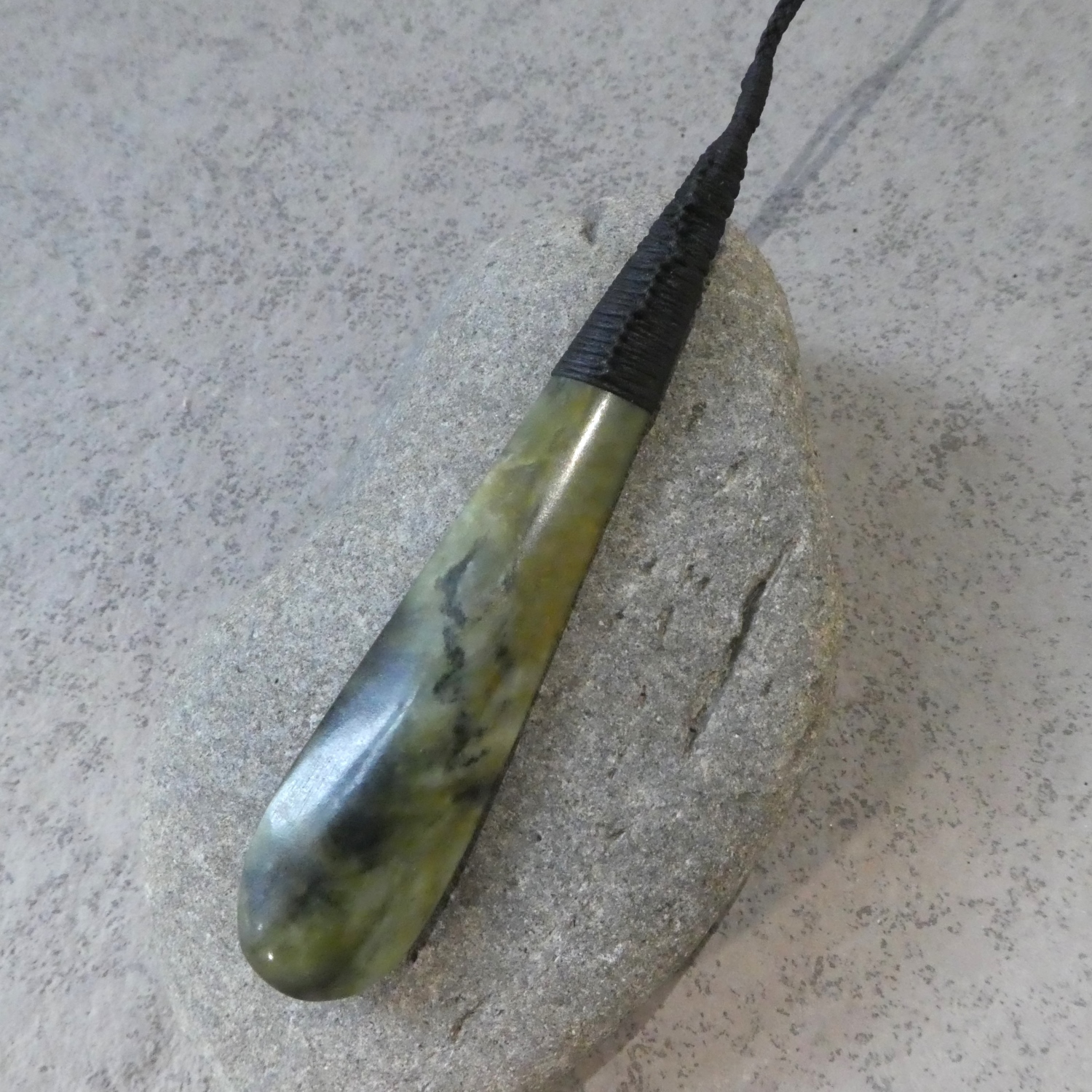 NZ greenstone/pounamu, black waxed cord