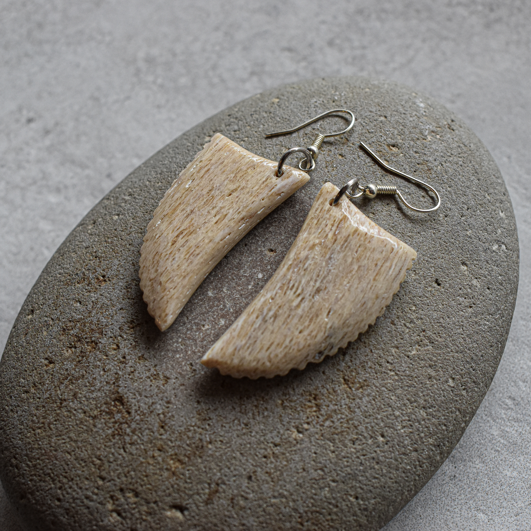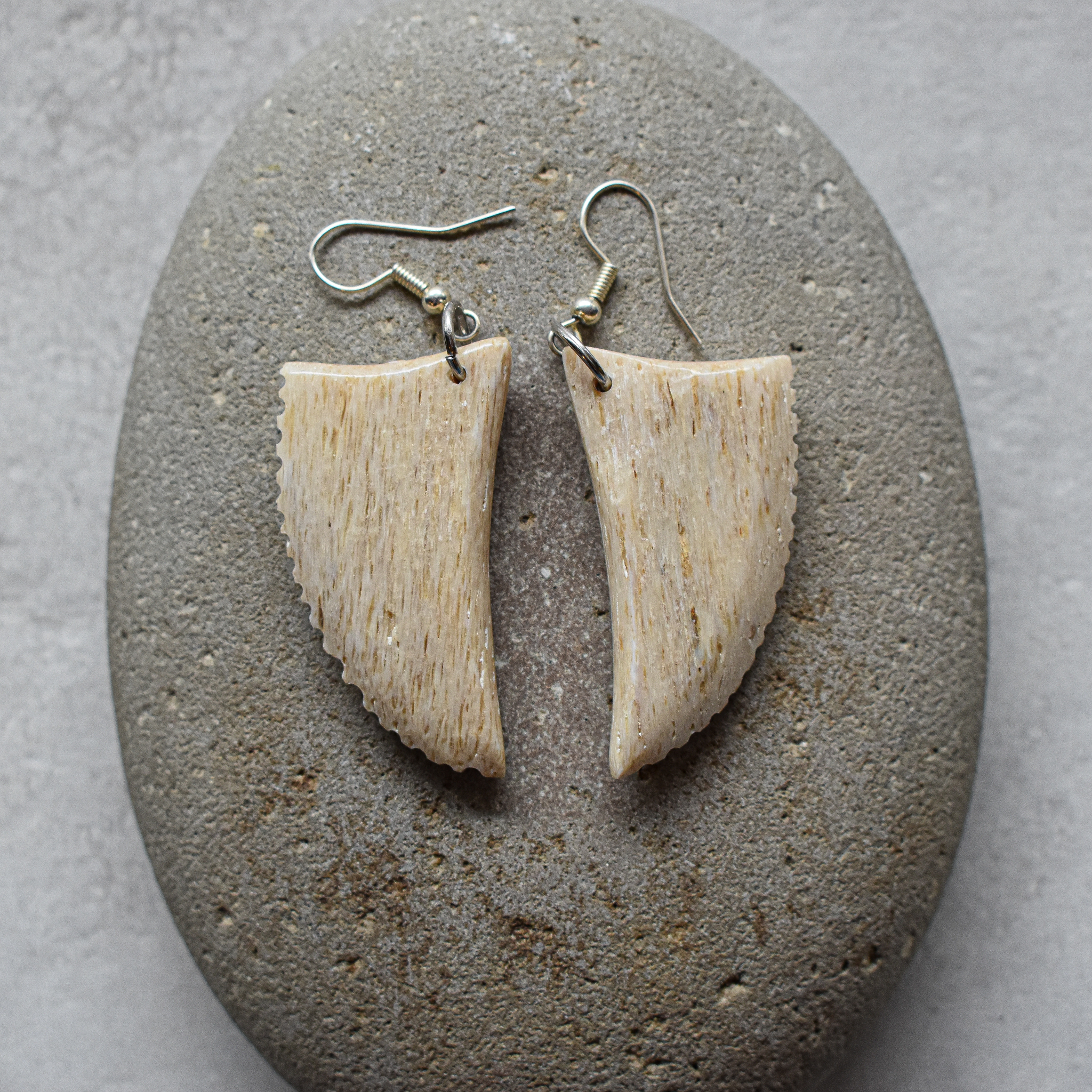 NZ Whalebone* Niho Earrings, silver hooks