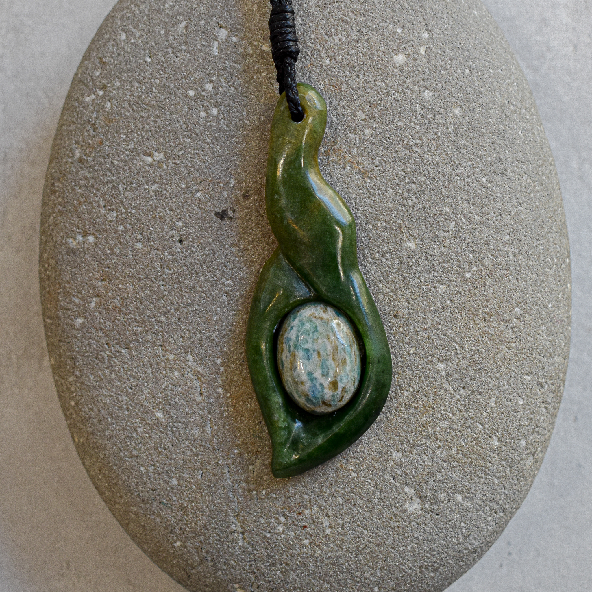 NZ greenstone/pounamu, Aotea & Wax Cord