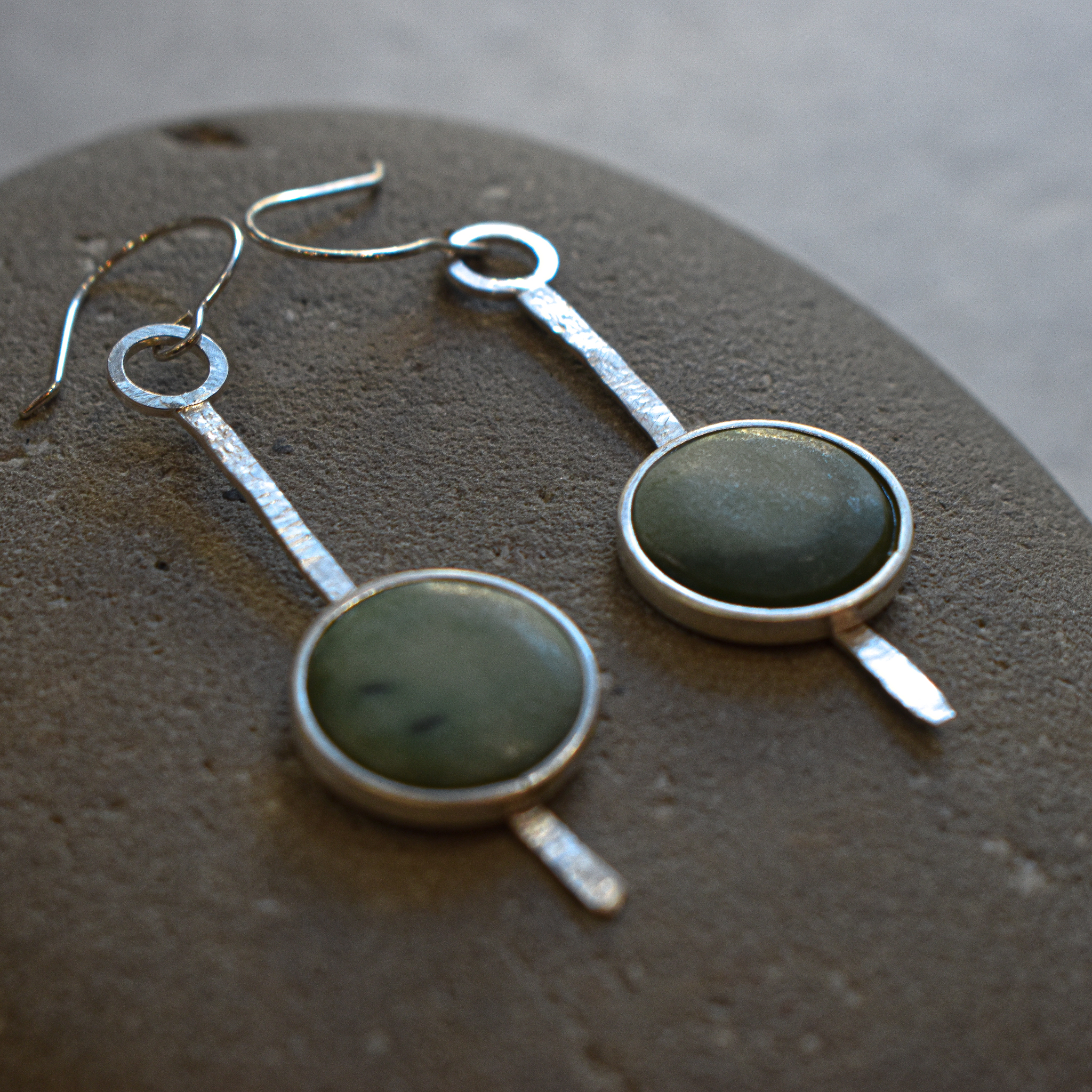Ana Krakosky – Medium Greenstone Disk On Stick Earrings (#EA-DI11 As)