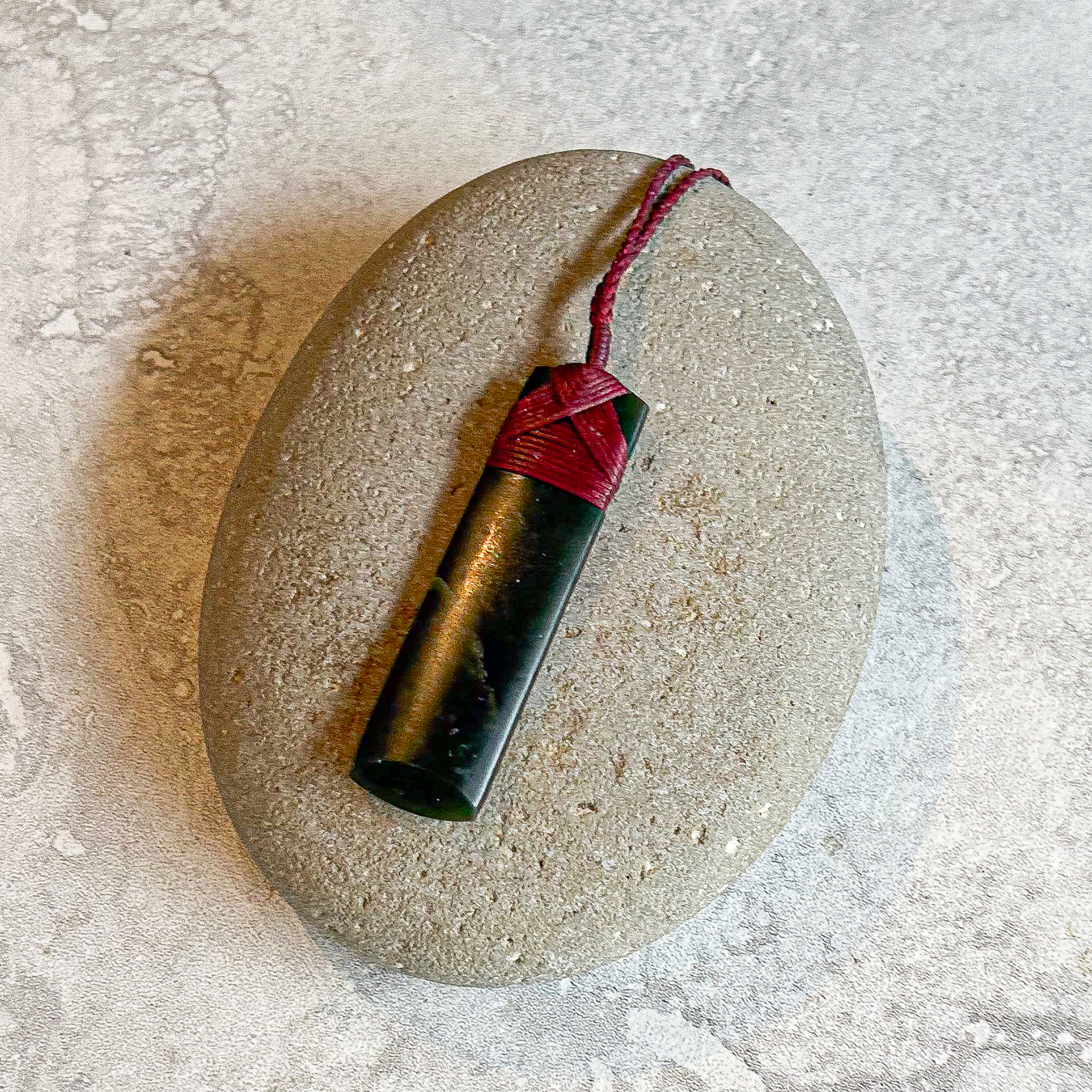 NZ greenstone/ jade pounamu, red waxed cord
