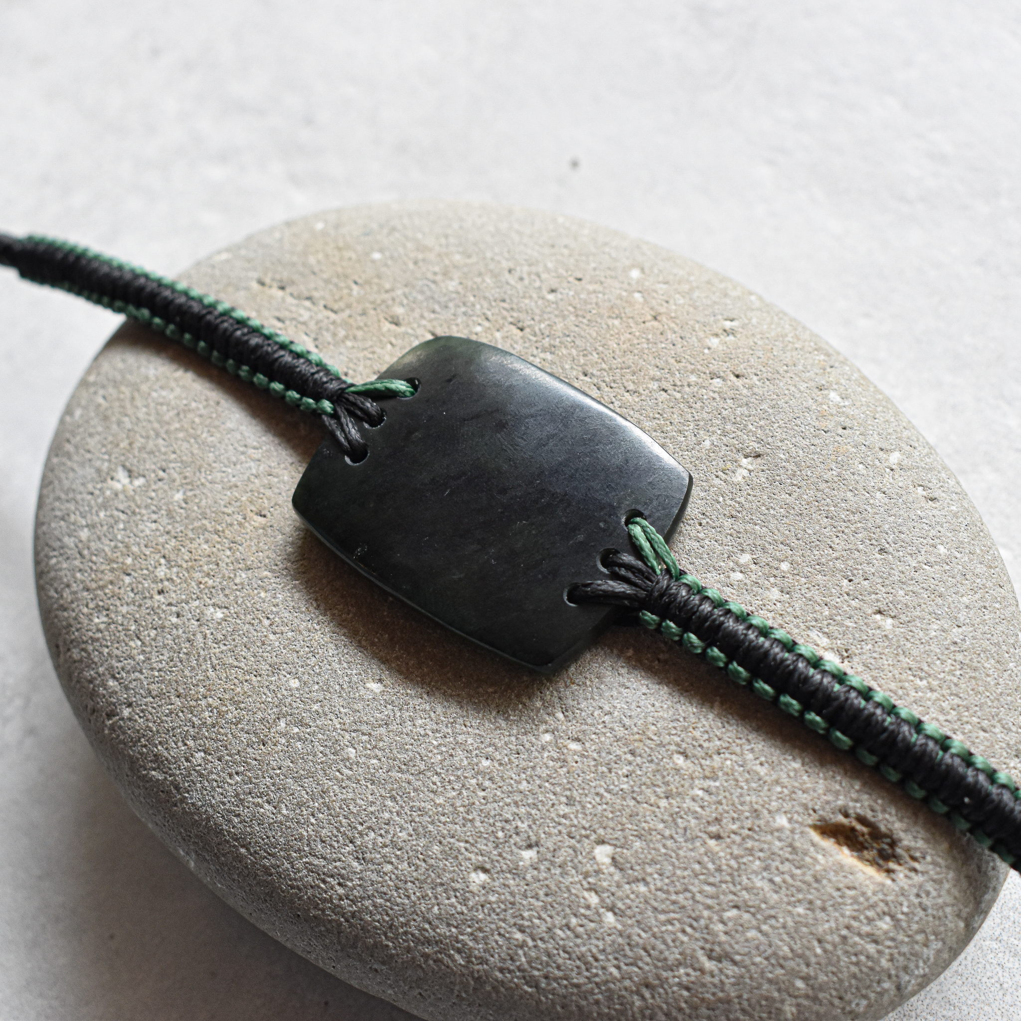 Pounamu Bracelet NZ Greenstone/Pounamu, Waxed, Weaved Cord 210 x 30 x 3 mm As Dec25 #115-42 NZD $297