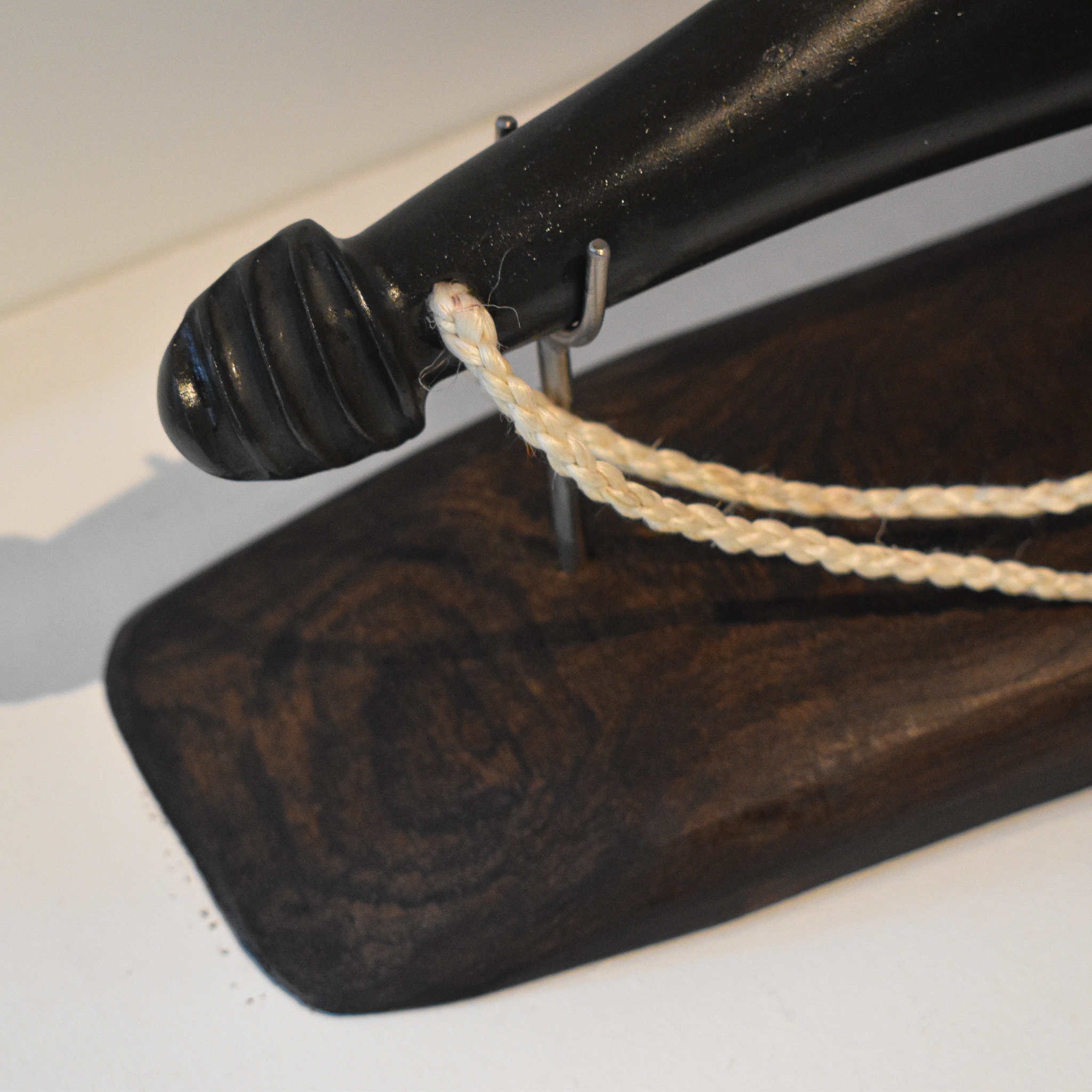 Carved by Onewa, On silky oak wood from the slopes of Taranaki Maunga. With a muka cord.