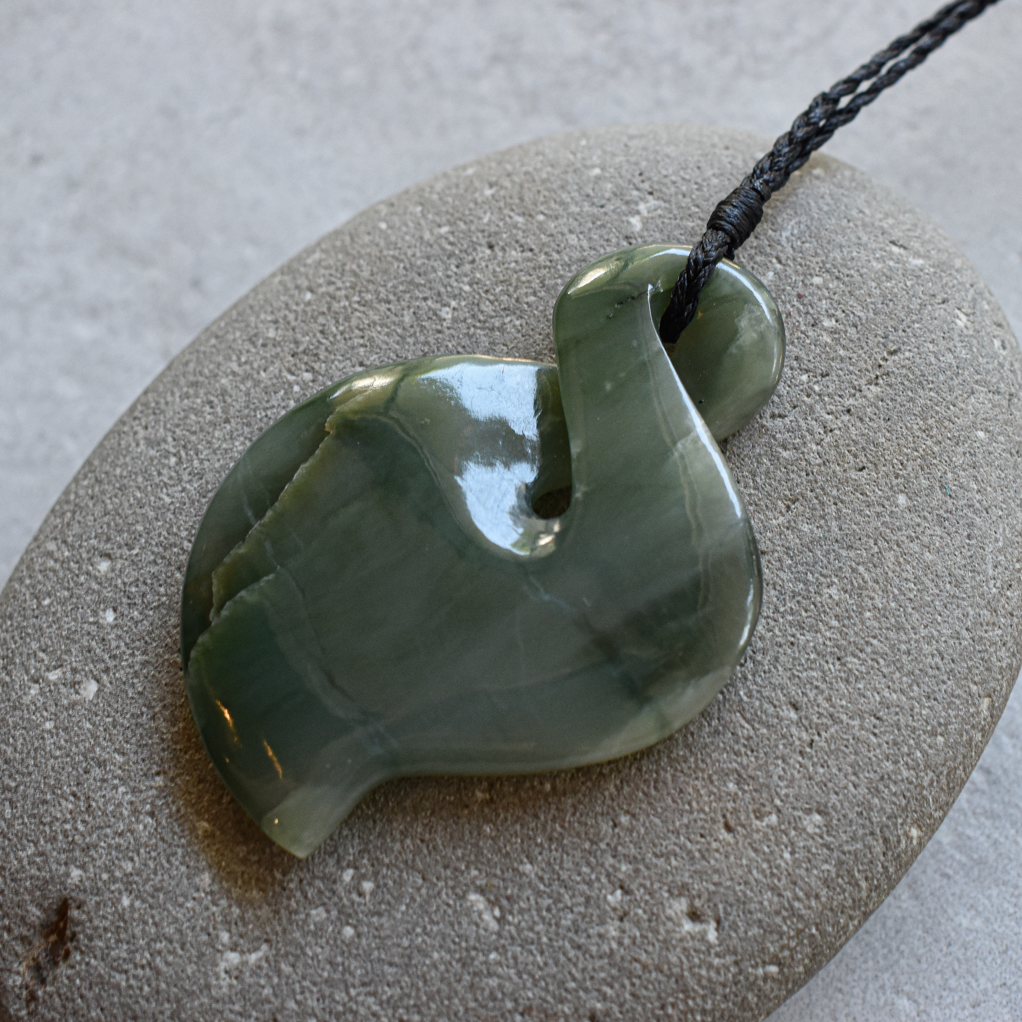 NZ pounamu/greenstone, waxed cord