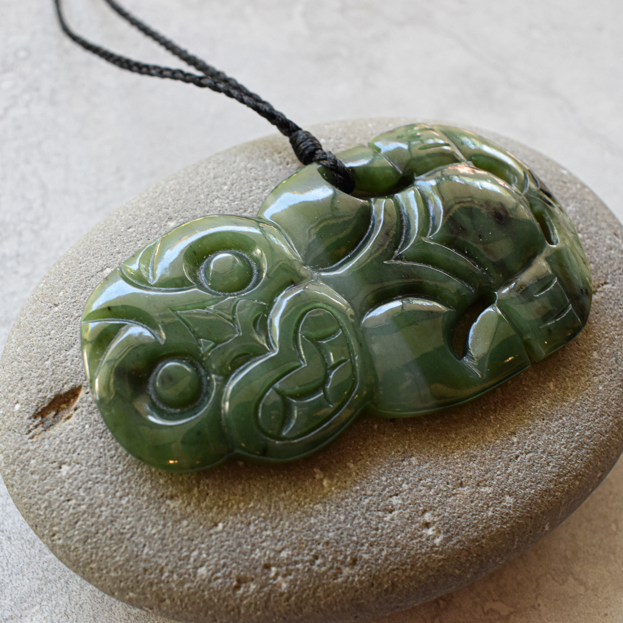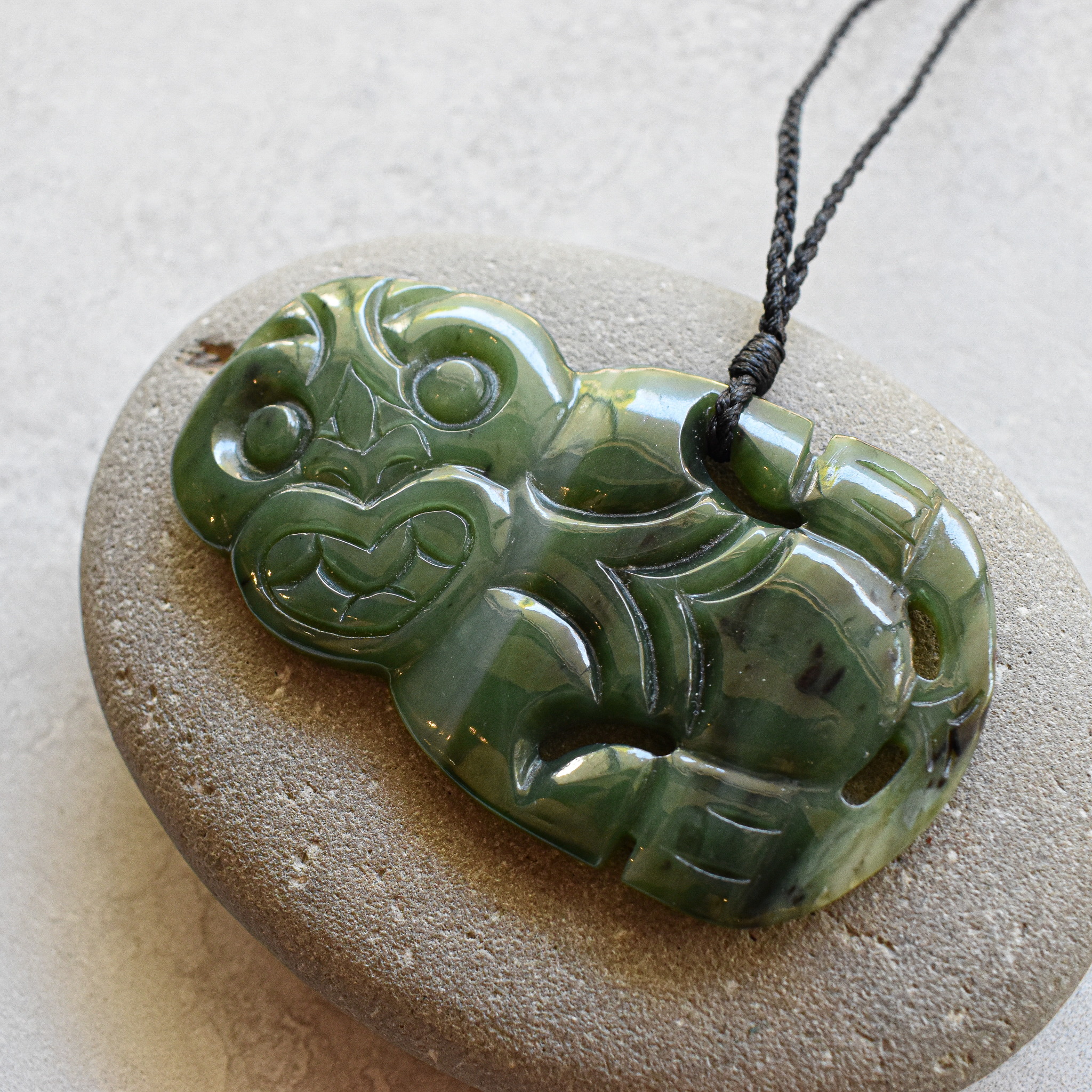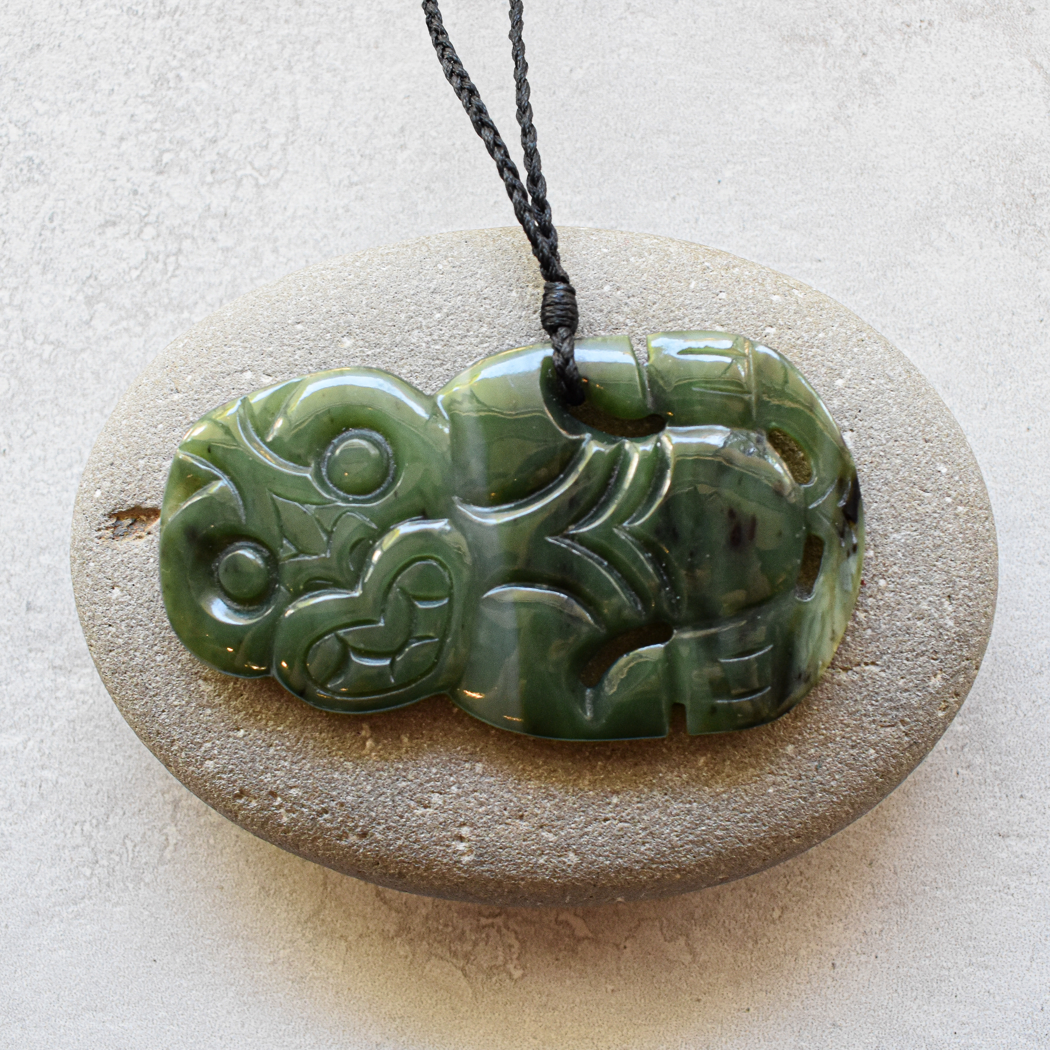 The tiki is a carved abstract human form usually made of greenstone/pounamu. The tiki is said to represent the first man or the first woman, and can be worn for good luck, protection from evil, and fertility.
