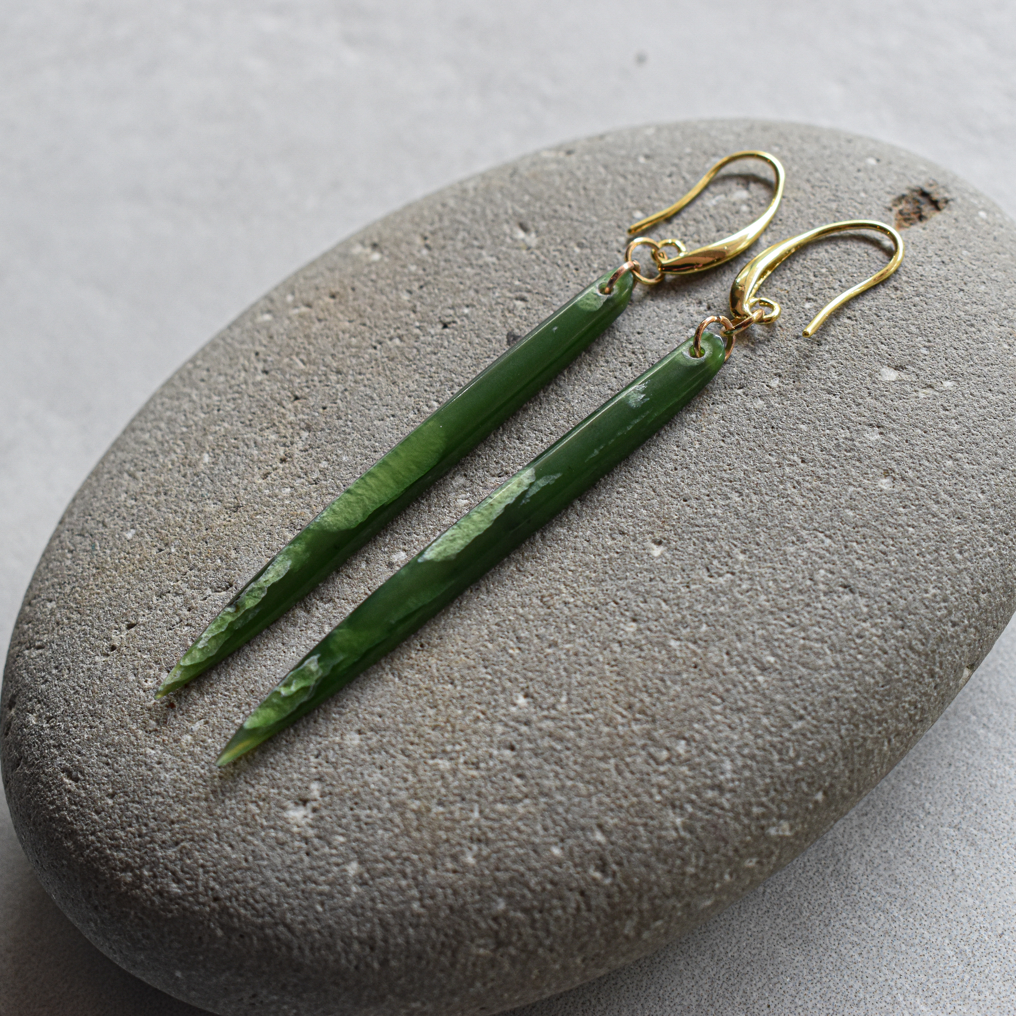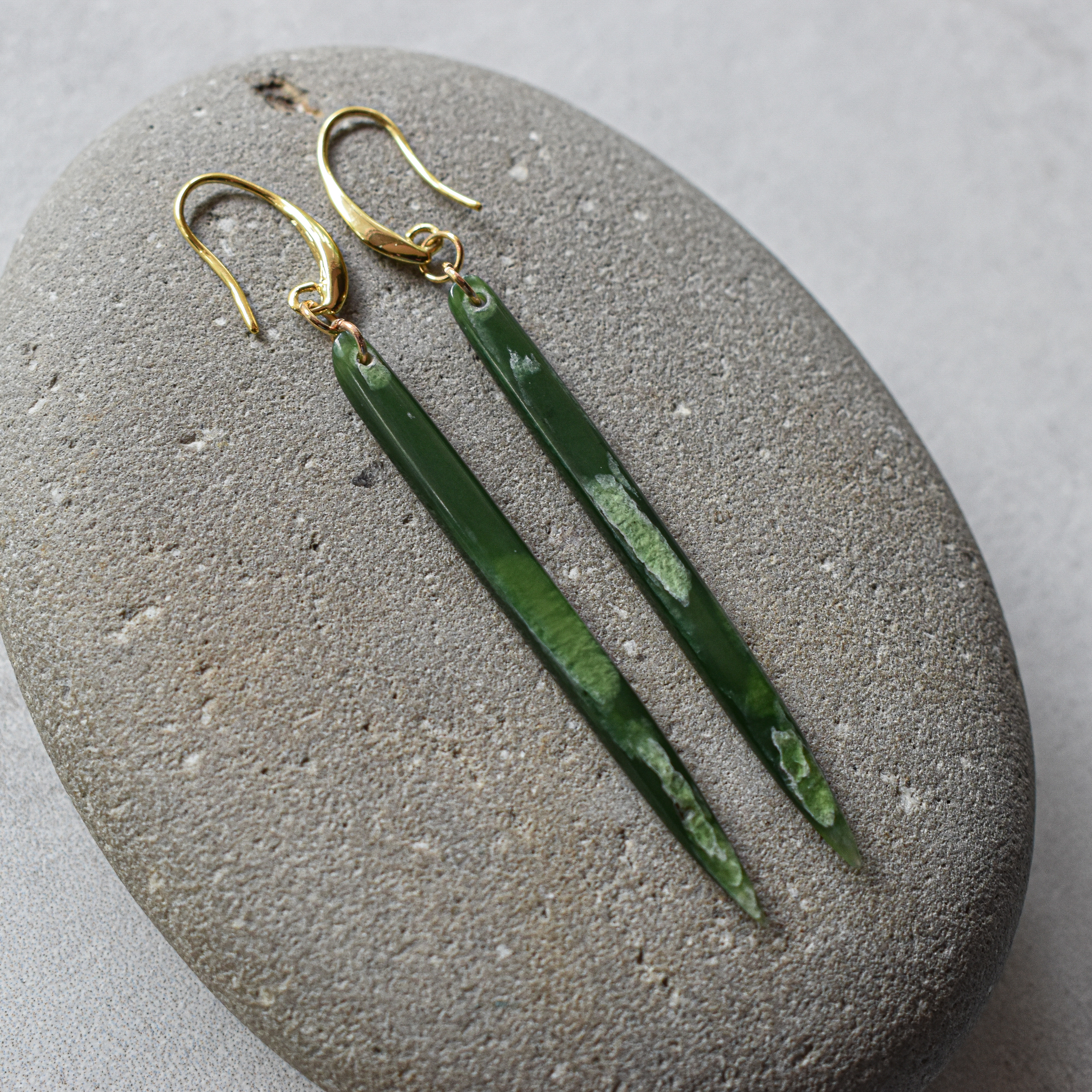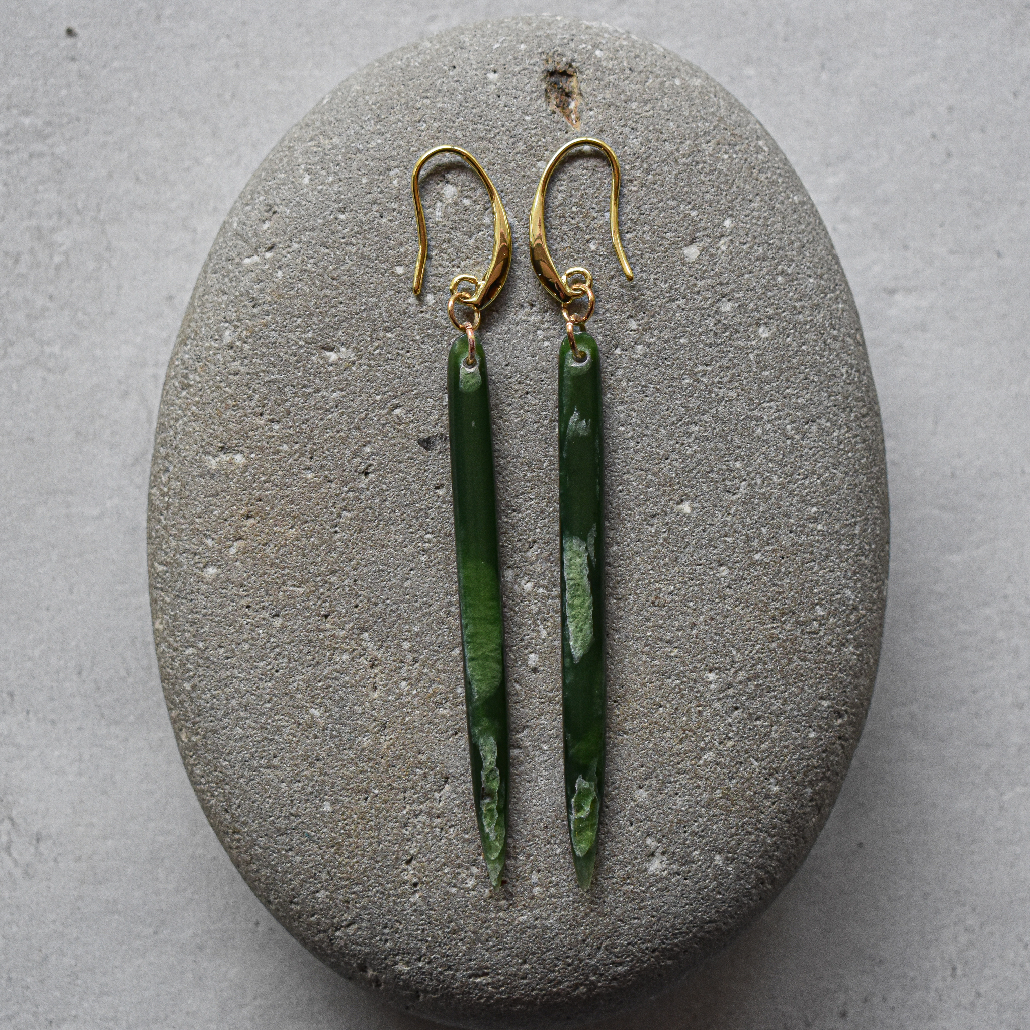 Pounamu Niho W/Gold Earrings NZ Greenstone/Pounamu, Gold.