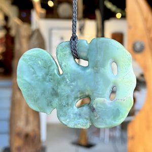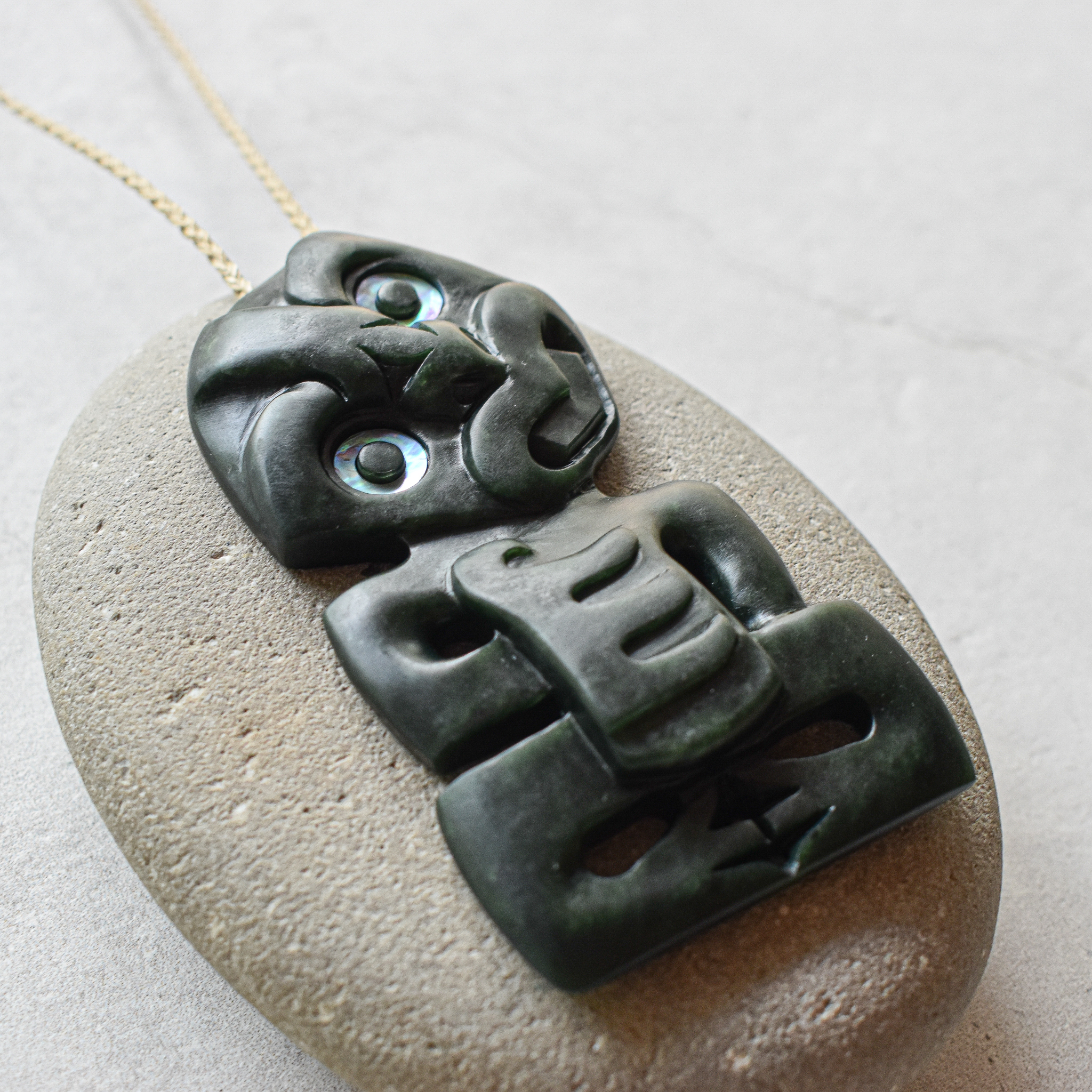 NZ Greenstone/Pounamu, Paua inlay, Waxed Tan Cord