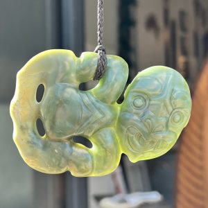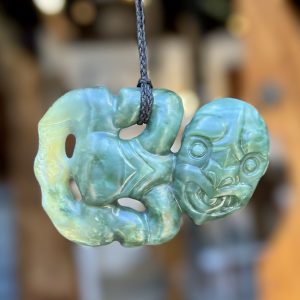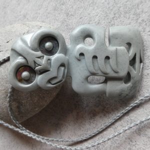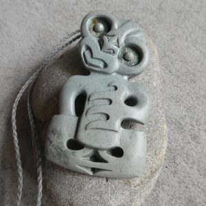 The tiki is a carved abstract human form usually made of greenstone/pounamu. The tiki is said to represent the first man or the first woman, and can be worn for good luck, protection from evil, and fertility.