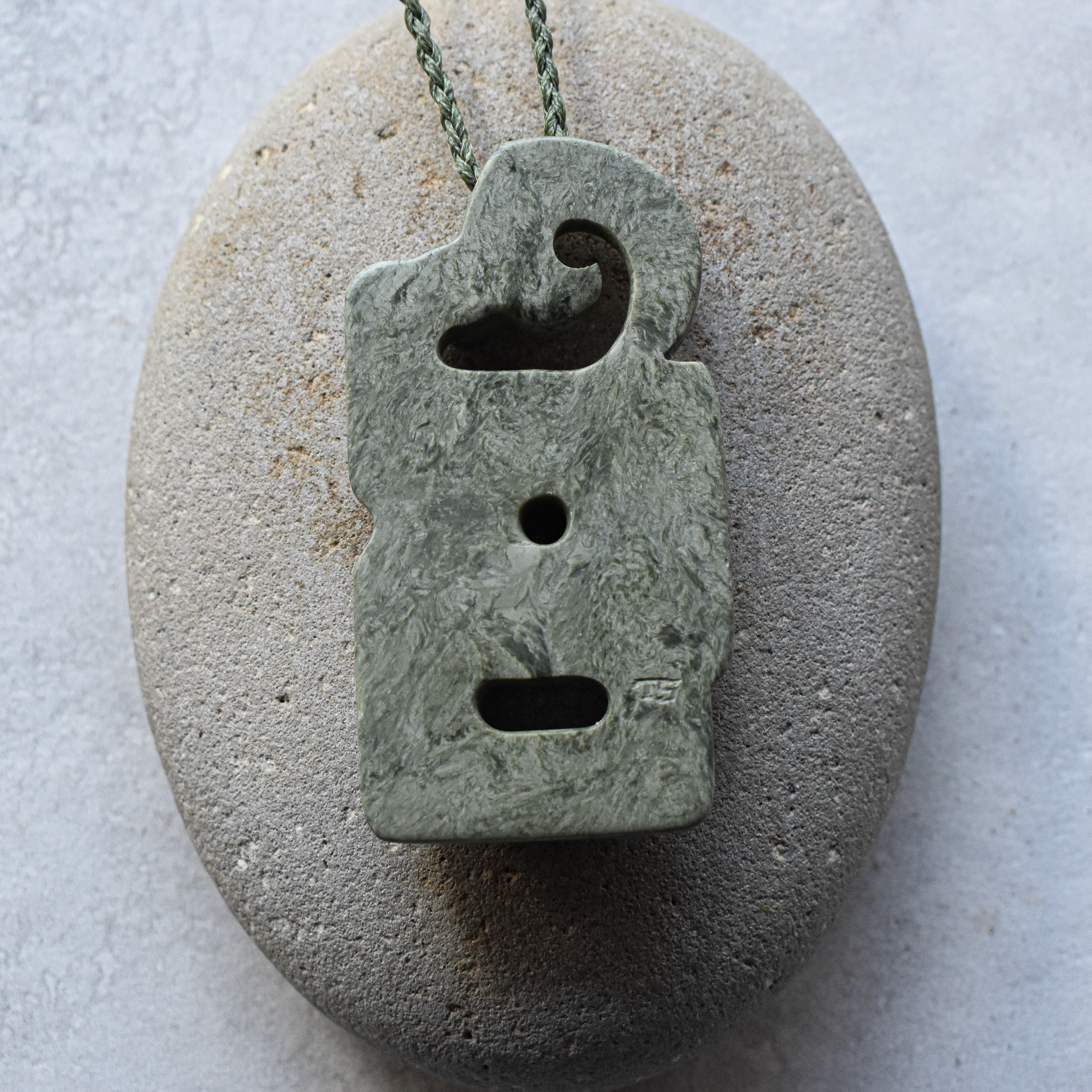 NZ greenstone/pounamu, waxed cord