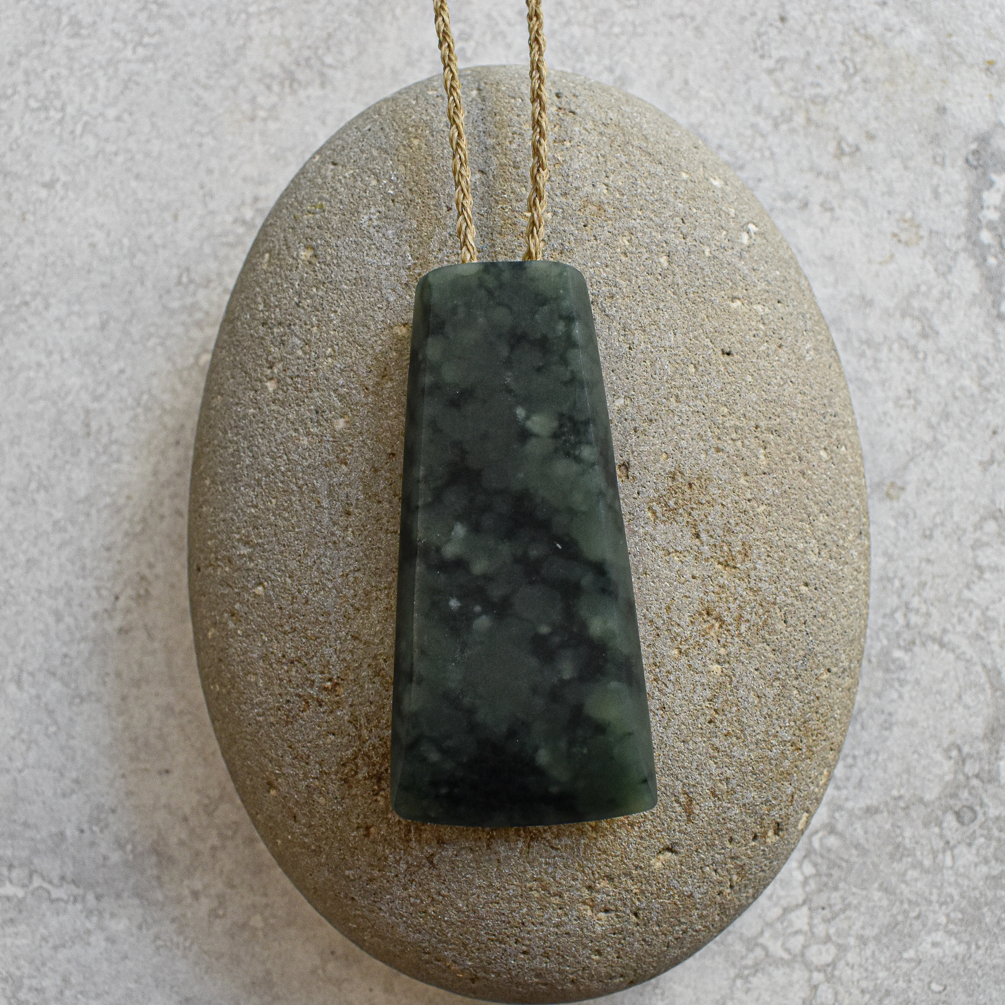 NZ greenstone/pounamu, grey waxed cord