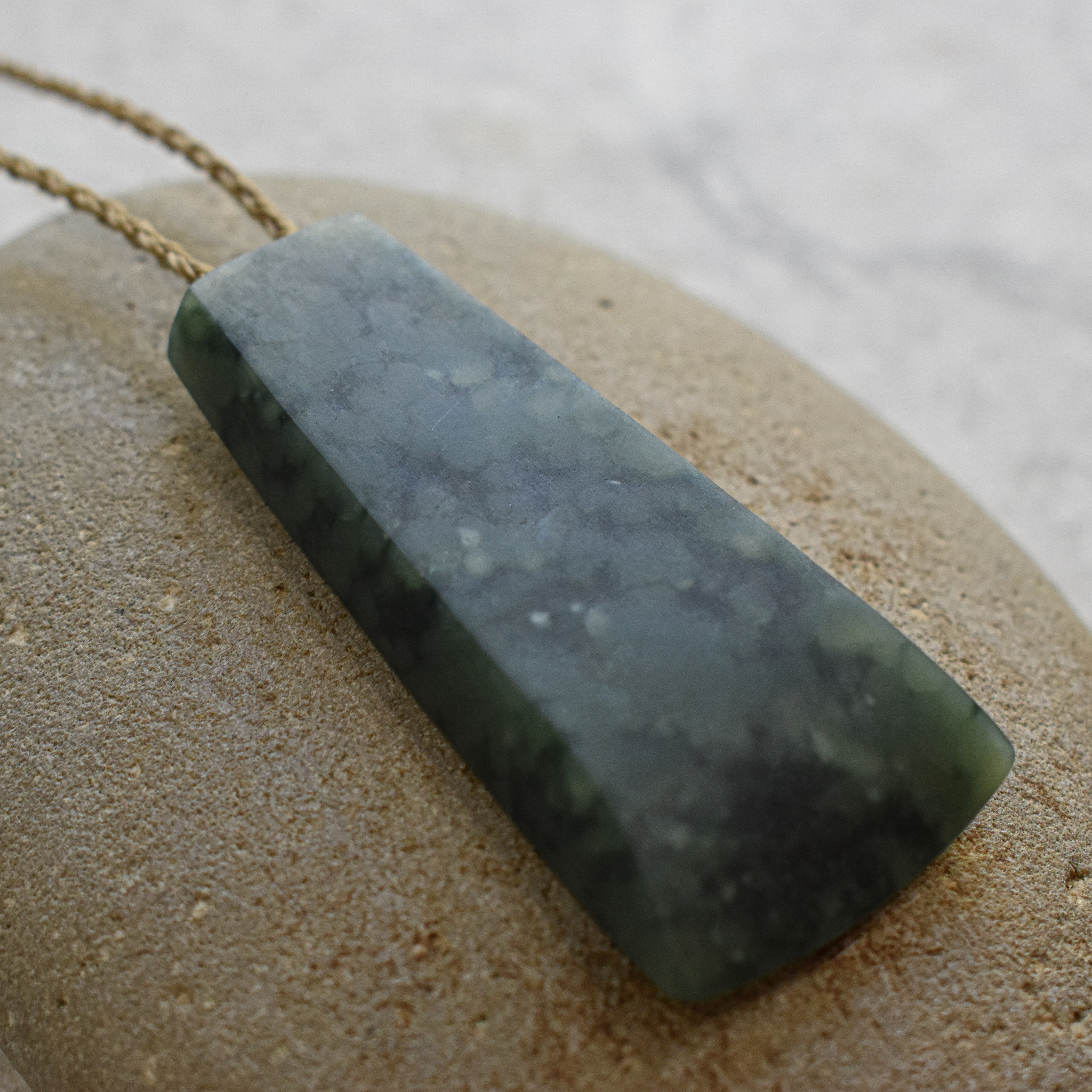 Greenstone Toki pendant with wax cord