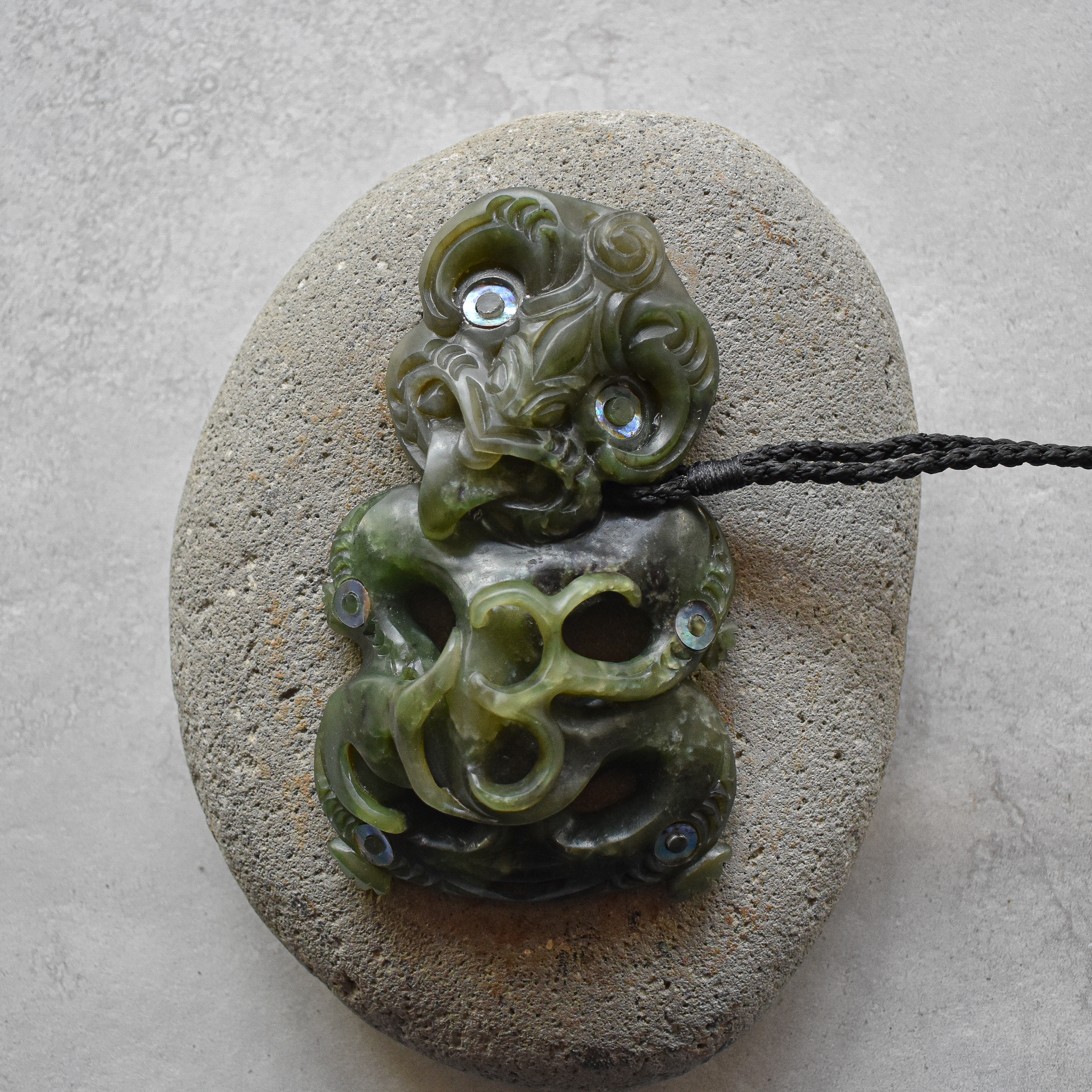 NZ Greenstone/pounamu, waxed cord, Paua