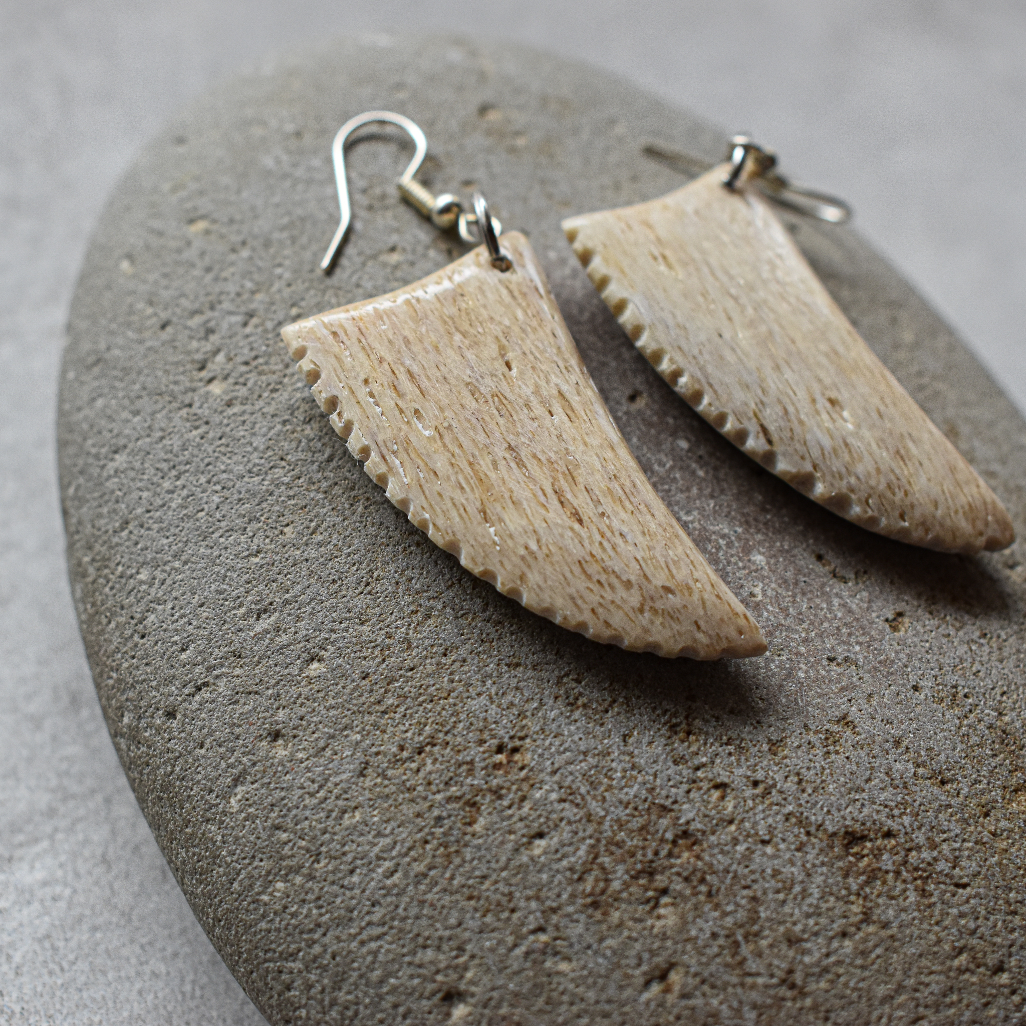 NZ Whalebone* Niho Earrings, silver hooks