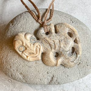 The manaia is a mythological creature and is usually depicted with the head of a bird, the body of a man and the tail of a fish (representing sky, earth and sea). A manaia is a spiritual guardian/guardian angel and protects the wearer from danger or evil. The three fingers can represent past, present and future or birth, life and death.