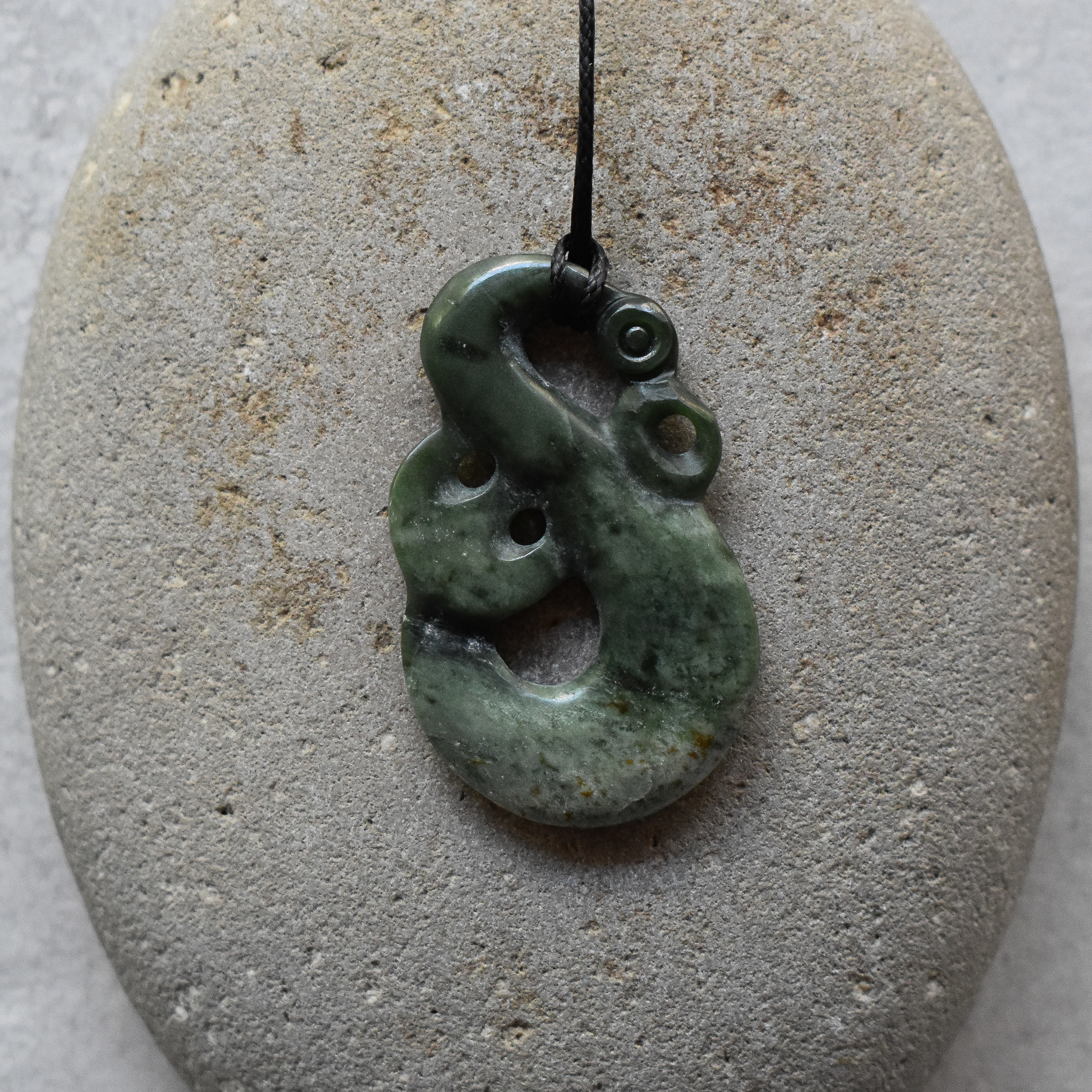 The manaia is a mythological creature and is usually depicted with the head of a bird, the body of a man and the tail of a fish (representing sky, earth and sea). A manaia is a spiritual guardian/guardian angel and protects the wearer from danger or evil.
