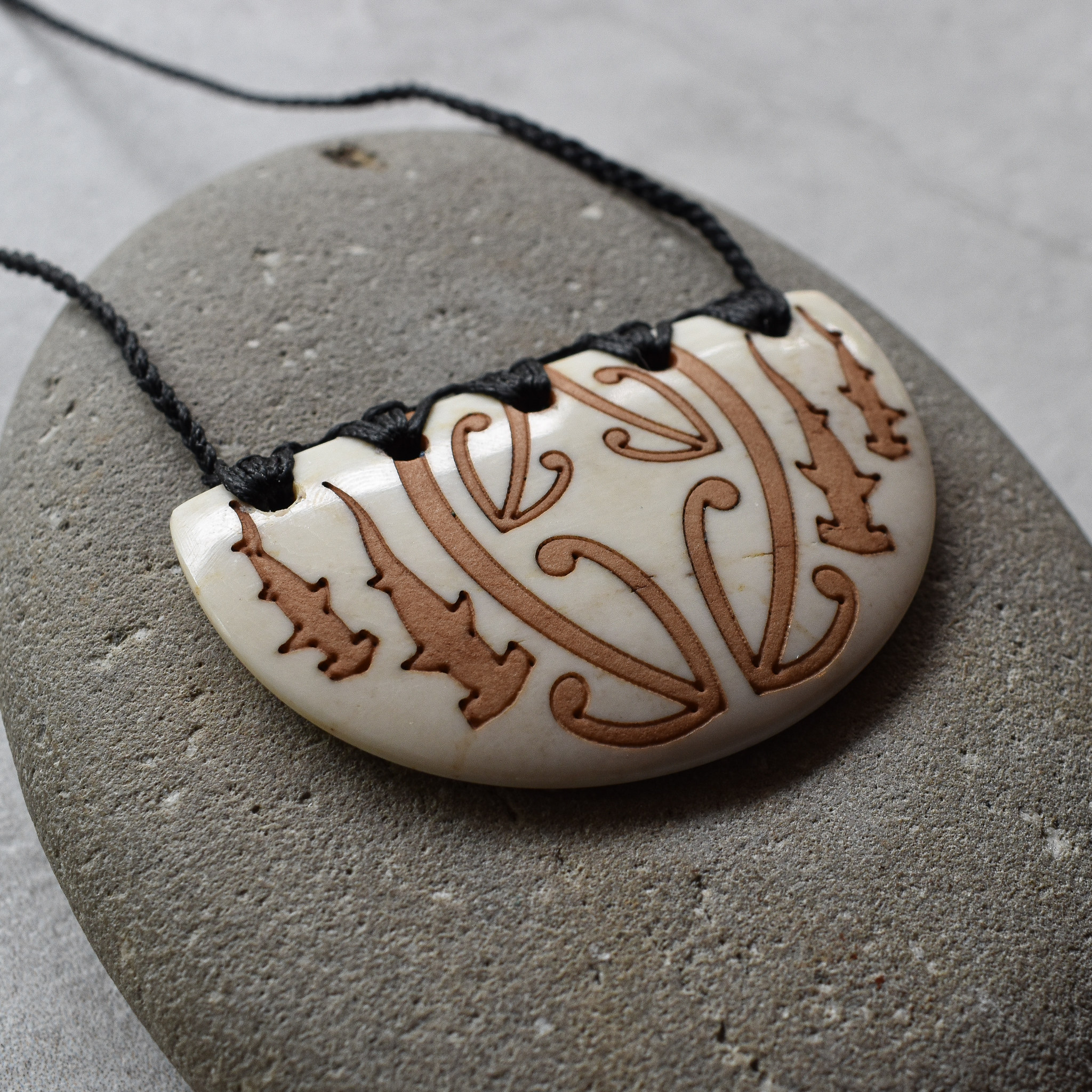 shield – half circular, disc-shaped. Represents protection. Whakaruruhau are breastplates or shield adornments that represent strength and leadership. They are a taonga of personal protection that share their beauty to the Te Ao T?roa (outer world).