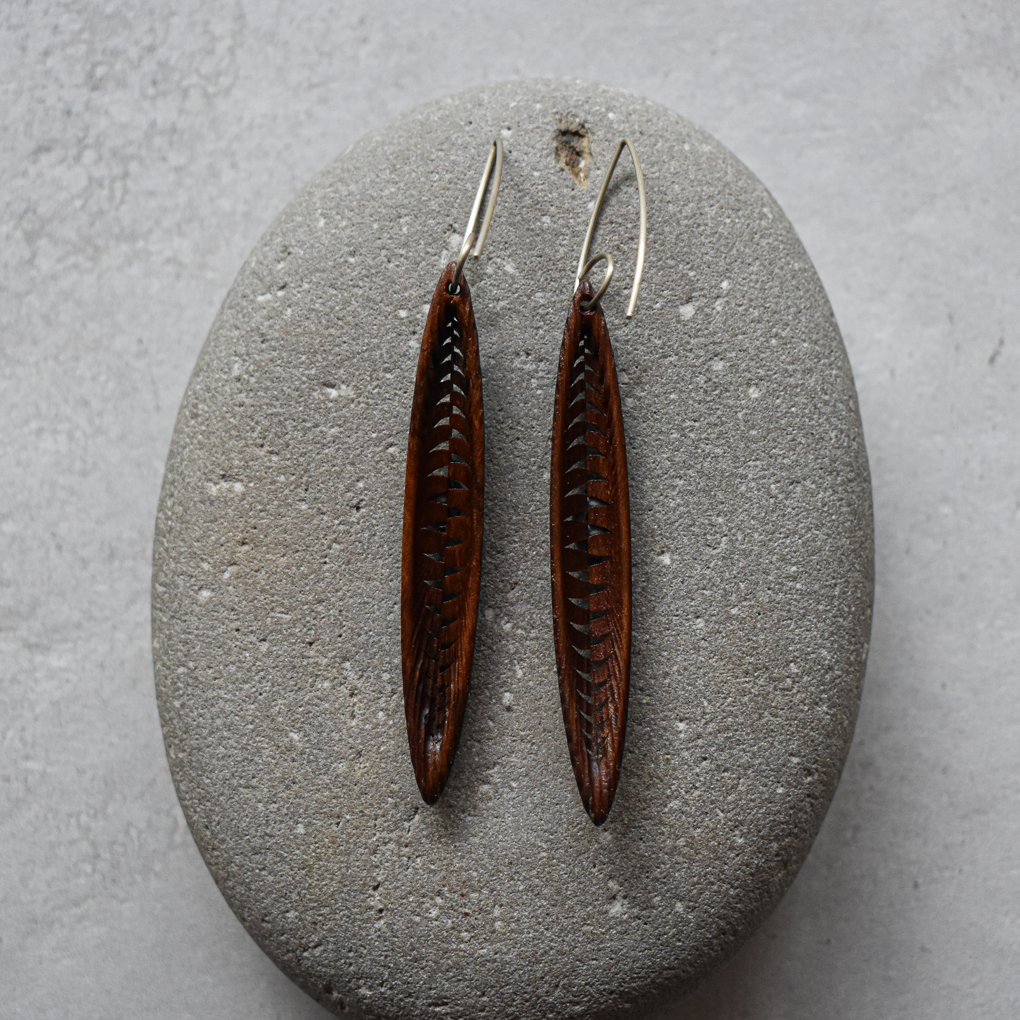 Waka Earrings Totara, Silver 64 x 8 mm As Jan26 #PN-01 NZD $207