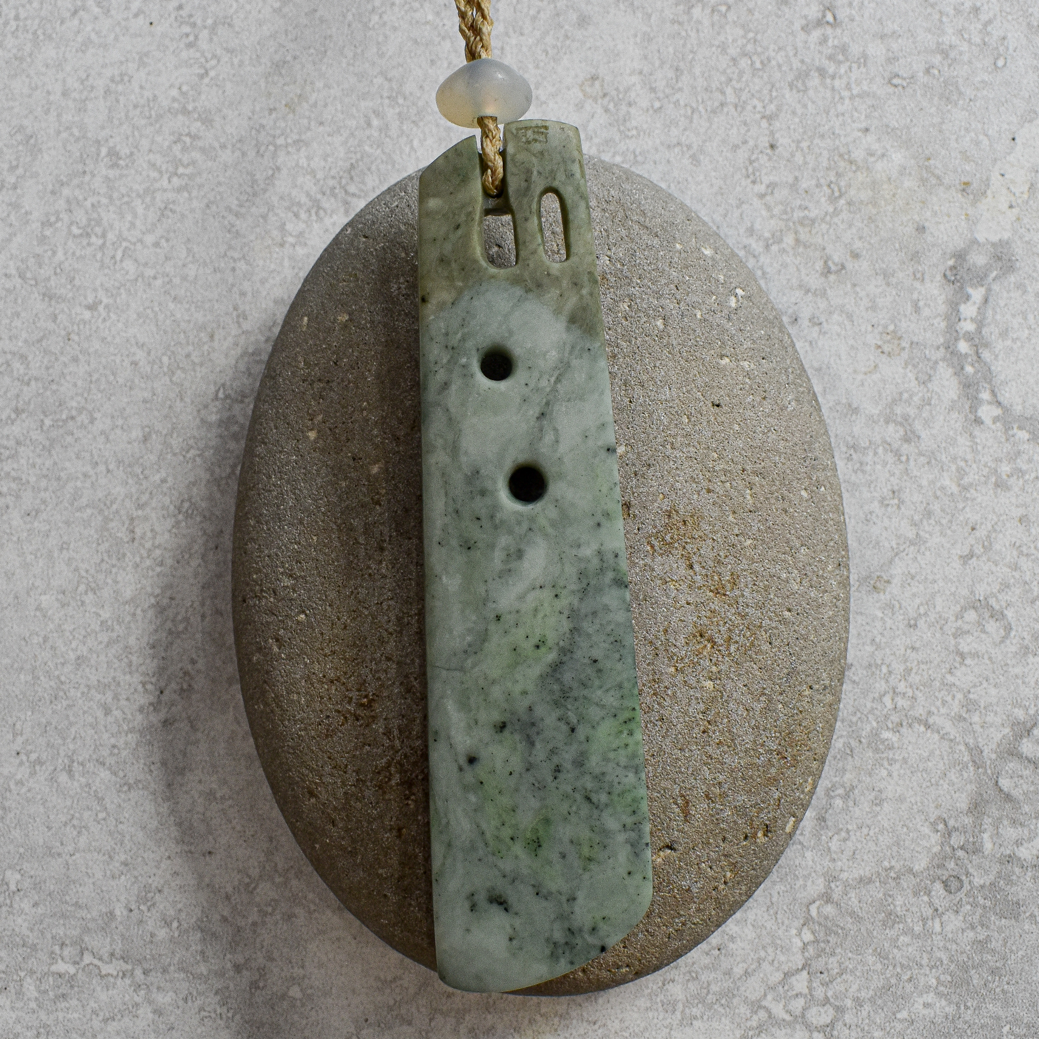 Greenstone Toki Manaia pendant with wax cord